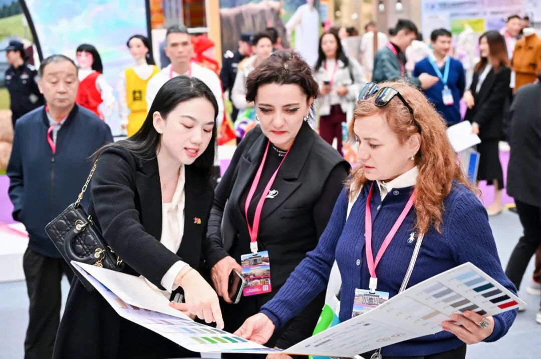 纱线展是历届“织交会”的重头戏之一,熙熙攘攘的毛织贸易中心现场,五彩缤纷的纱线展位错落有致,各色纱线在灯光下闪耀着柔和的光泽。参展商们热情地向来往的客商介绍自家产品,从传统的棉麻到高科技的合成纤维,应有尽有。空气中弥漫着纱线特有的清新味道,伴随着机器的轻微轰鸣声,交织出一幅繁忙而充满活力的行业盛会图景。